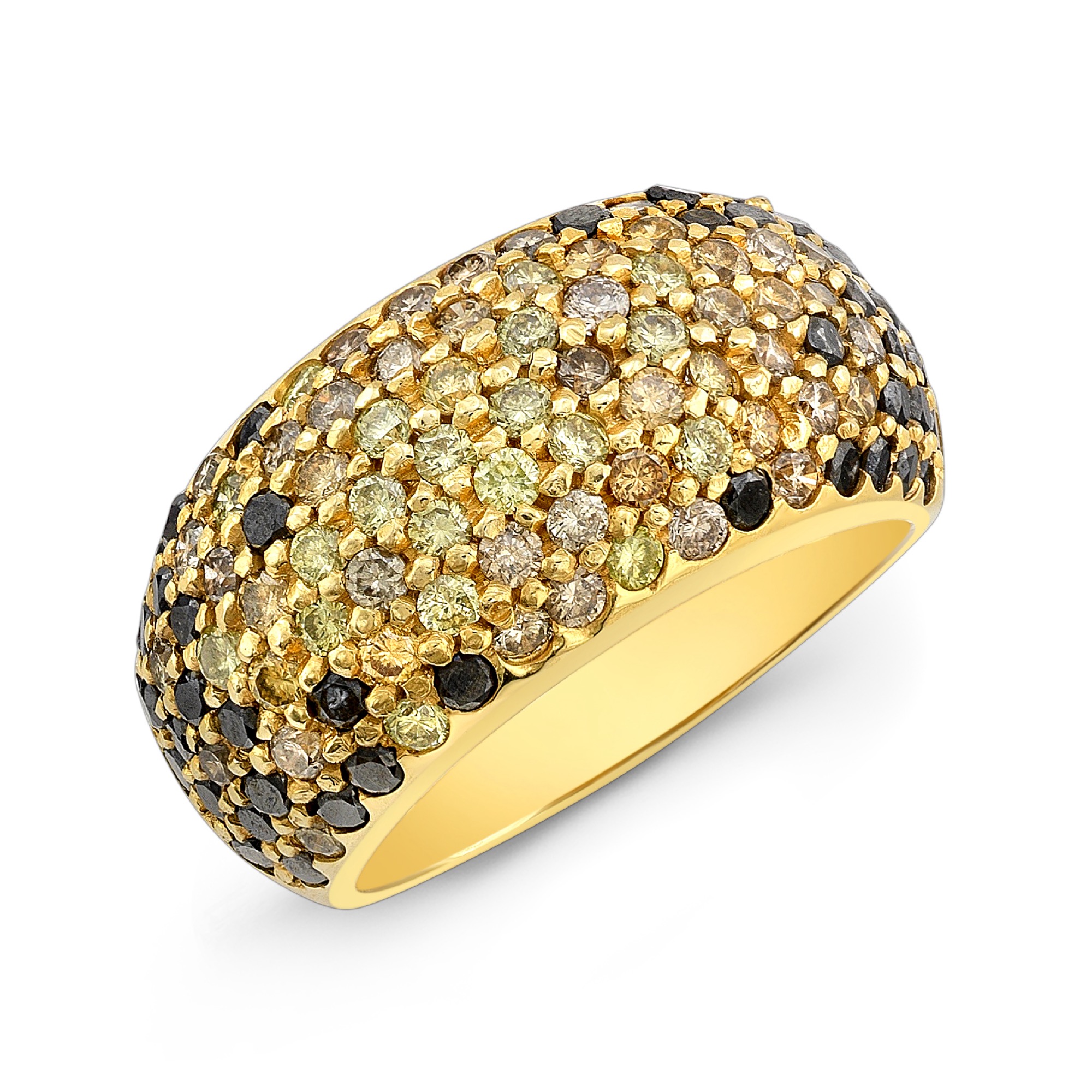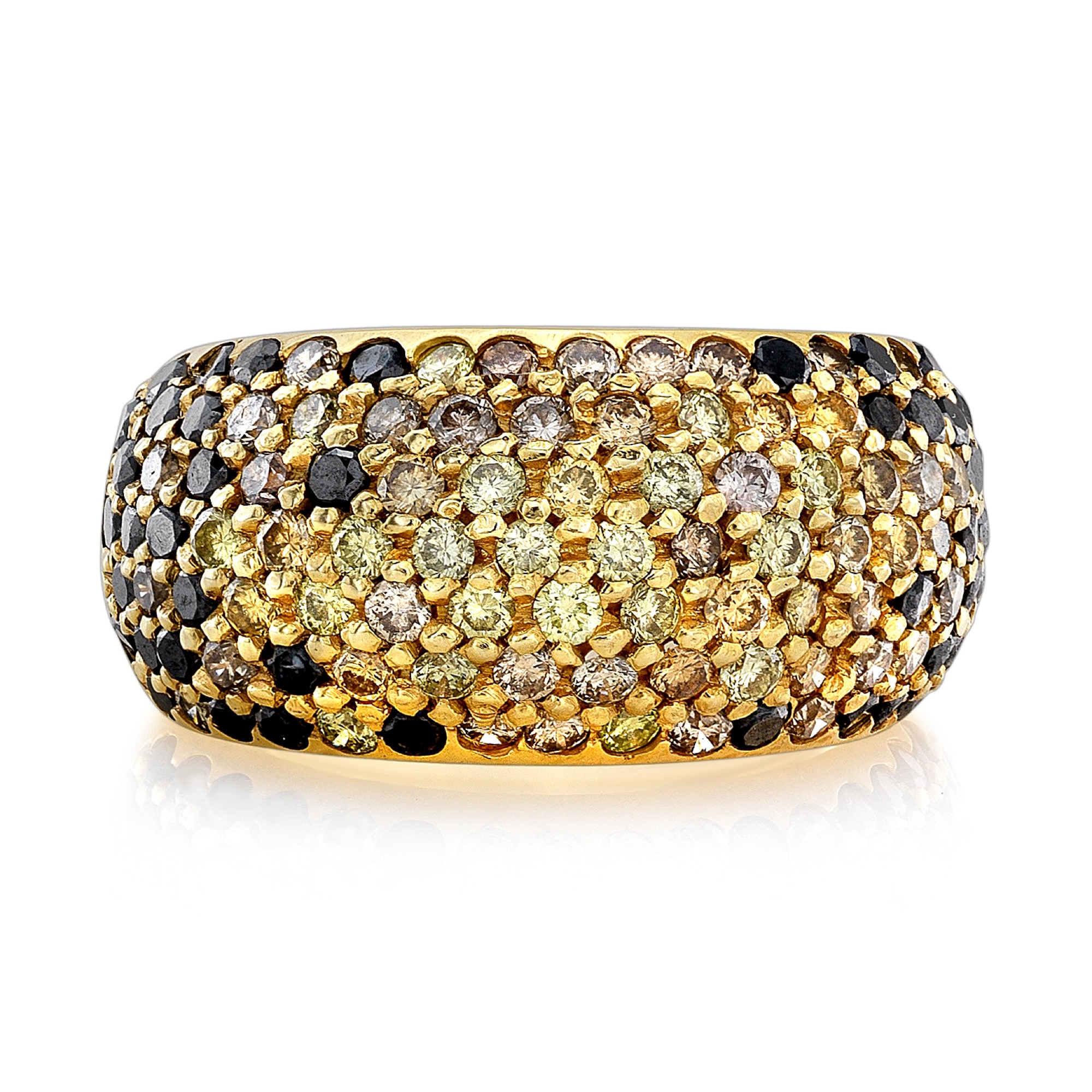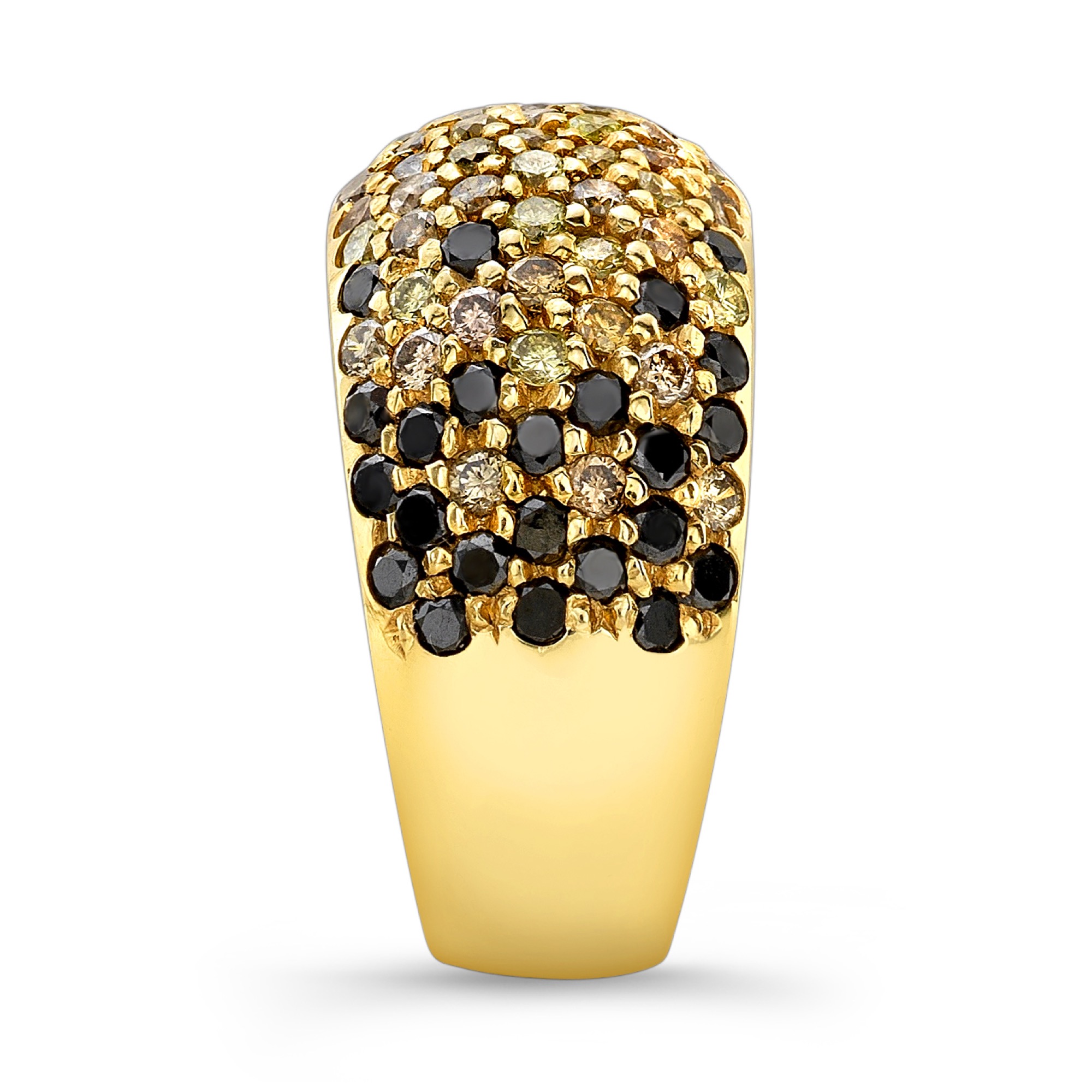Cigar pave band with yellow, champagne and black diamonds ombre effect