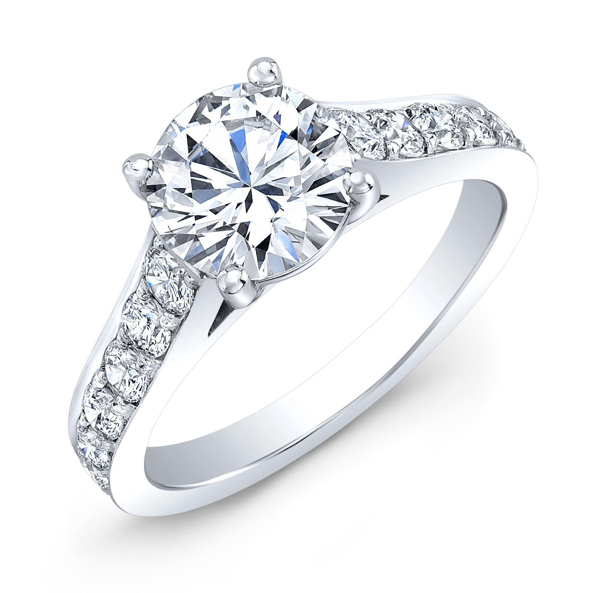 Four-prong basket setting with graduated pavÉ-set diamonds on the side