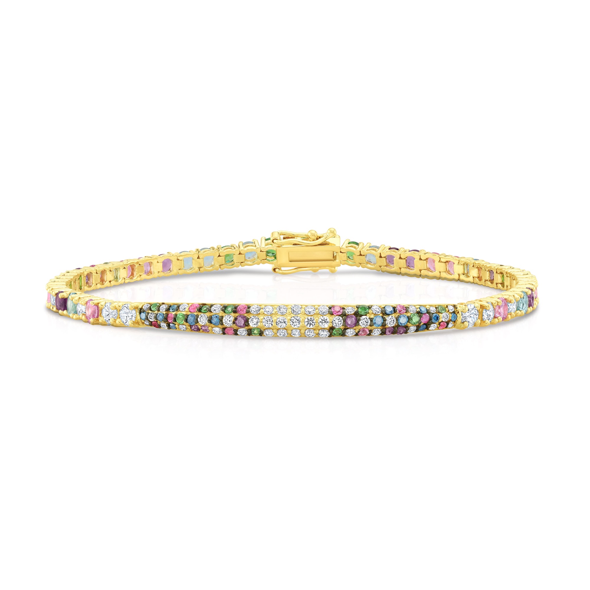 Mixed color saphire and diamond pave tennis bracelet