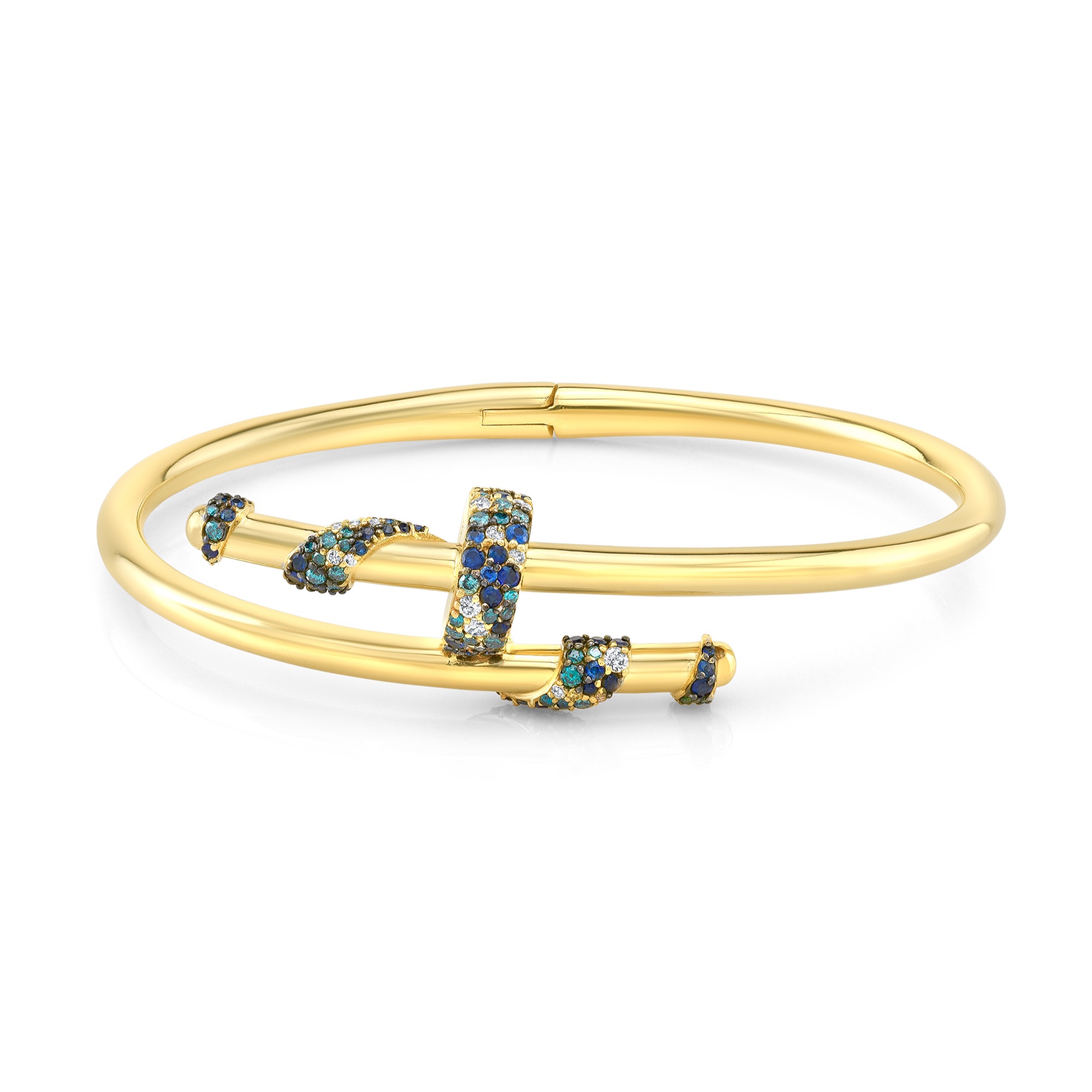 Mixed diamond and sapphires snow pave bangle